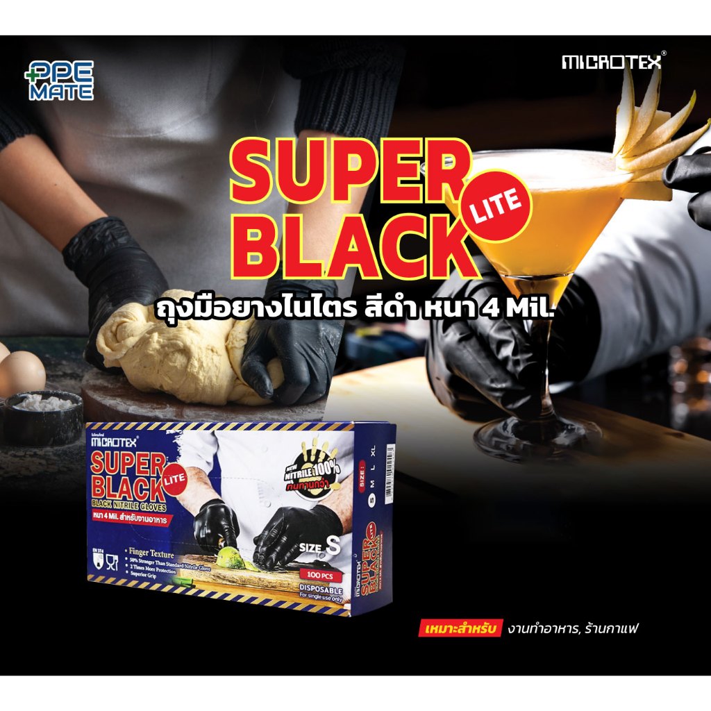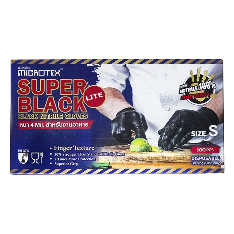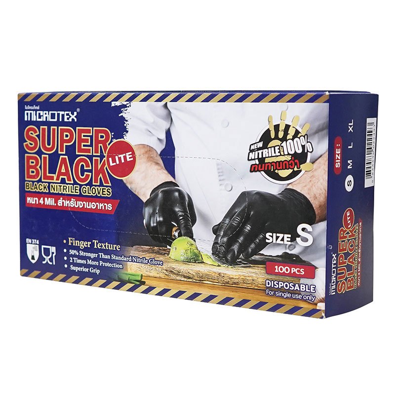 Super Black Lite(100 ชิ้น/กล่อง)ถุงมือยางไนไตรล์สีดำ หนา 4 mil. | ทำอาหาร | ร้านอาหาร | คาเฟ่