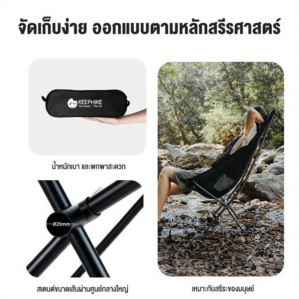 KEEPHIKE เก้าอี้พับกลางแจ้งเก้าอี้ตกปลาน้ำหนักเบาพิเศษแบบพกพาเก้าอี้พระจันทร์ตั้งแคมป์ชายหาดพนักพิงเก้าอี้วาดภาพศิลปะ