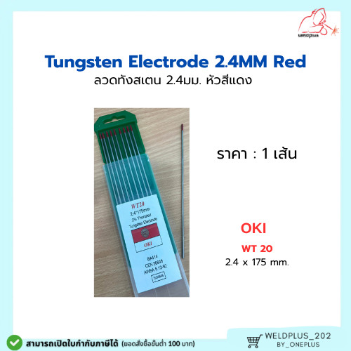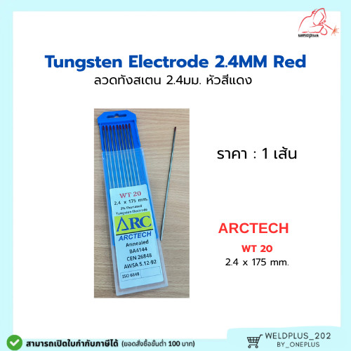 ลวดทังสเตน หัวสีแดง 2.4mm ARCTECH / OKI (ราคา 1 เส้น) Tungsten Electrode 2.4mmX175mm Red