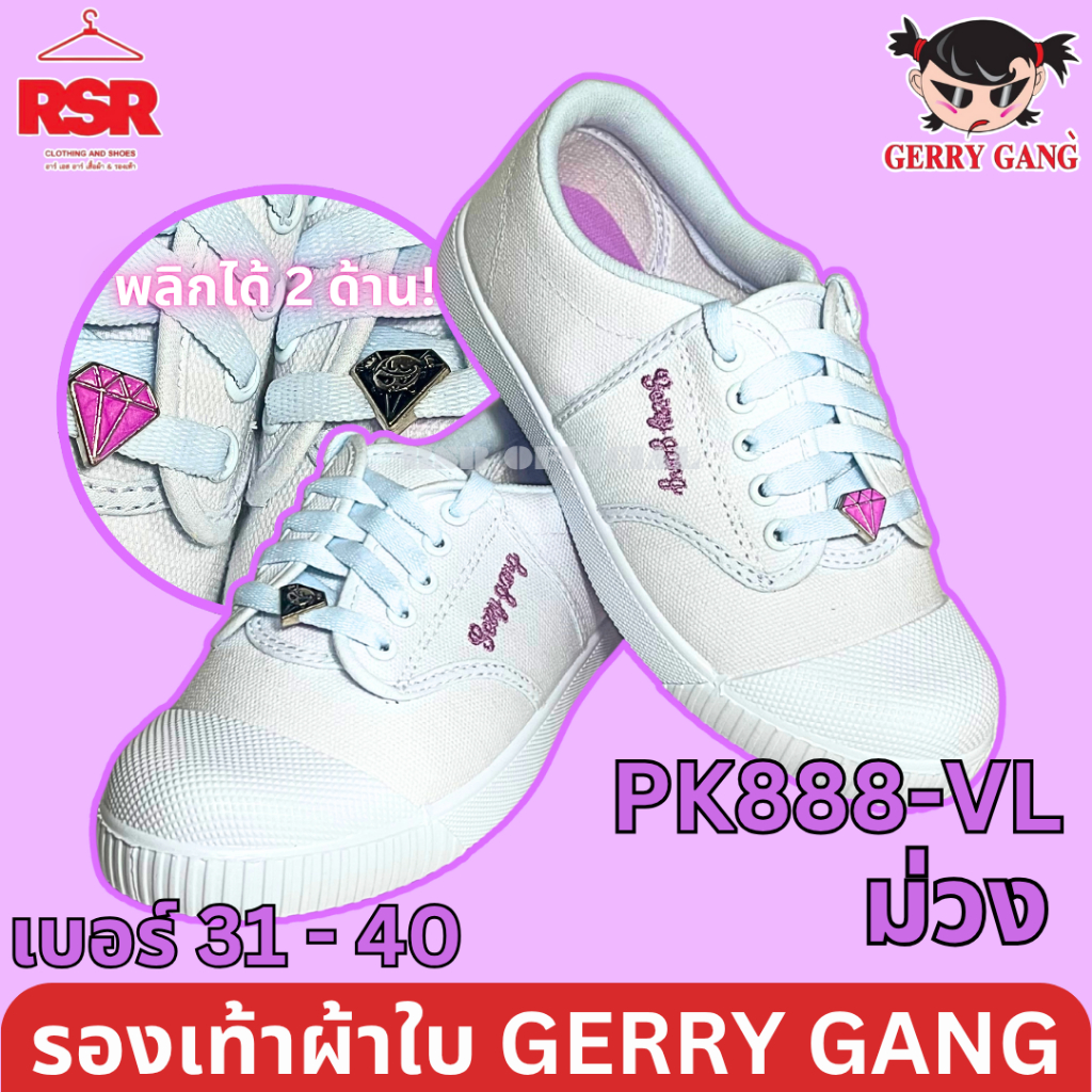 รองเท้าผ้าใบ นักเรียนหญิง รองเท้าพละ พื้นสีม่วง สีชมพู สีขาว ยี่ห้อ เกิร์ลลี่ แก๊ง Gerry Gang รุ่น PK888VL, PK888