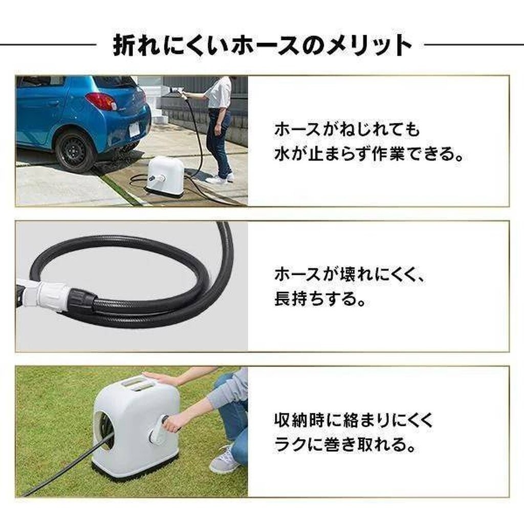 สายยางพร้อมที่ม้วนเก็บจากญี่ปุ่น Iris Ohyama full cover hose ree EX 20 m ในเซตมีหัวปืนฉีดน้ำมาให้ด้วย สีขาว