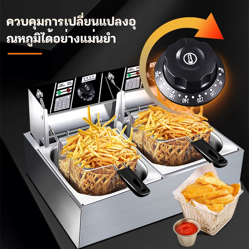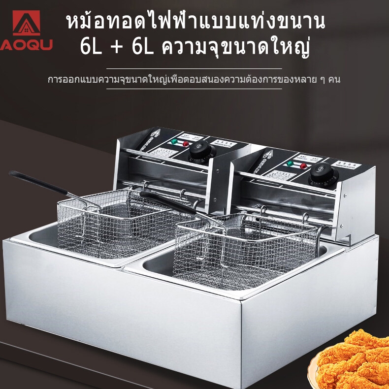 AOQU หม้อทอดไฟฟ้า 6 ลิตร 12 ลิตร 5000W หม้อทอดเฟรนซ์ฟรายไฟฟ้า สแตนเลส สวิตช์อิสระ