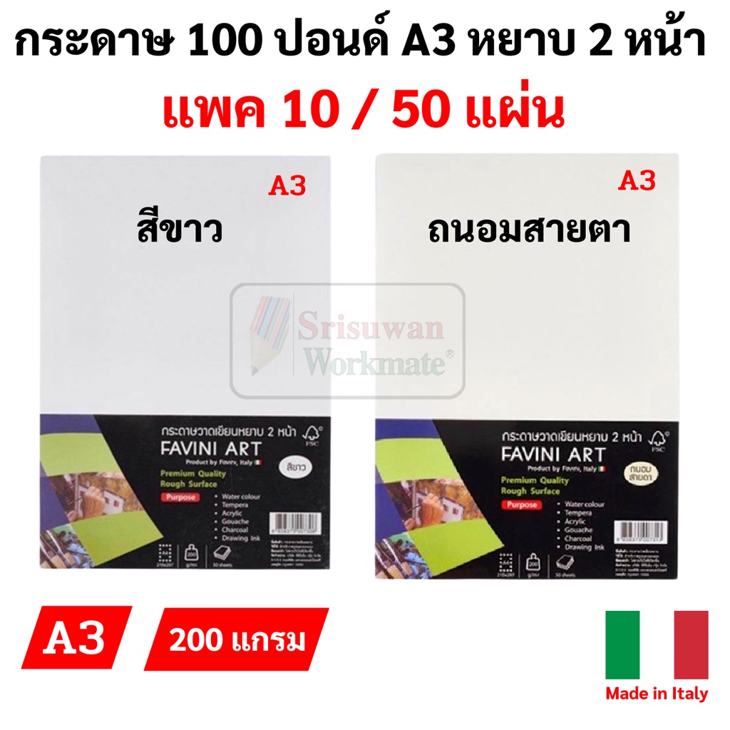 Favini Art Italy กระดาษวาดเขียน 100 ปอนด์ A3 หยาบ ร้อยปอน 200g ลงสี สเก็ตซ์ภาพ ถนอมสายตา / ขาว เอ3