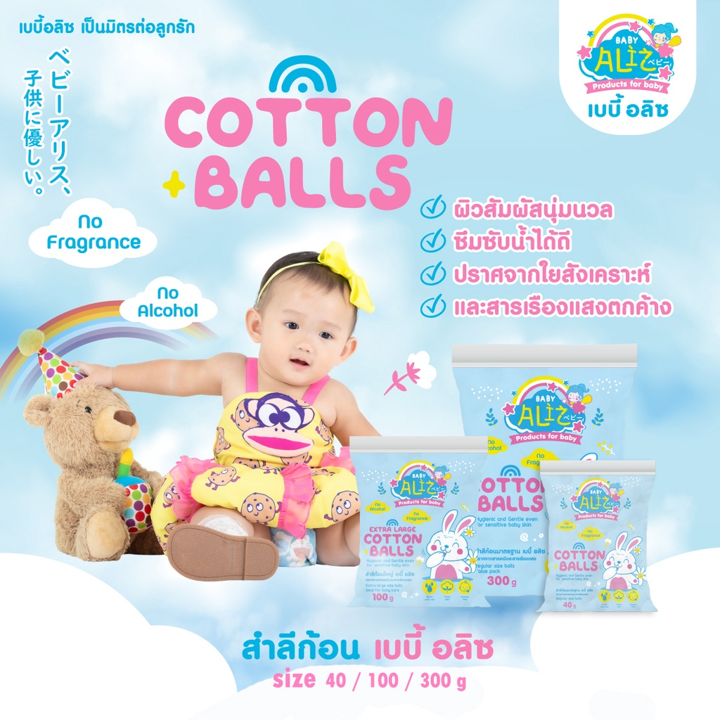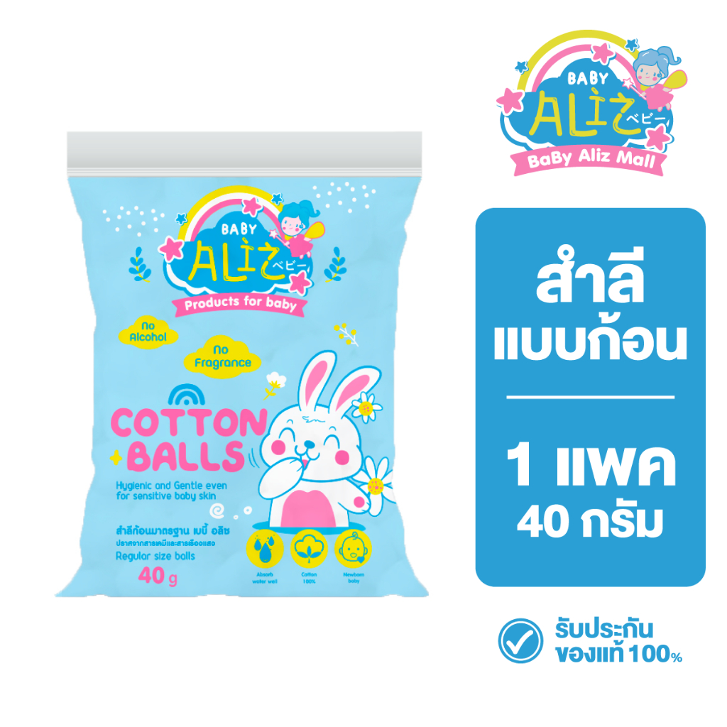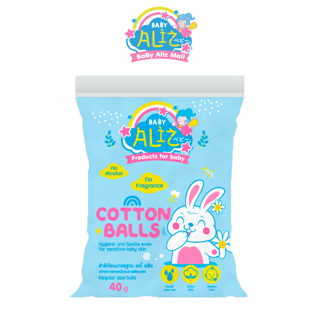 BABY ALIZ - สำลีก้อนมาตรฐาน 40 กรัม Cotton Balls Cotton 100% ไม่บาดผิว อ่อนโยน