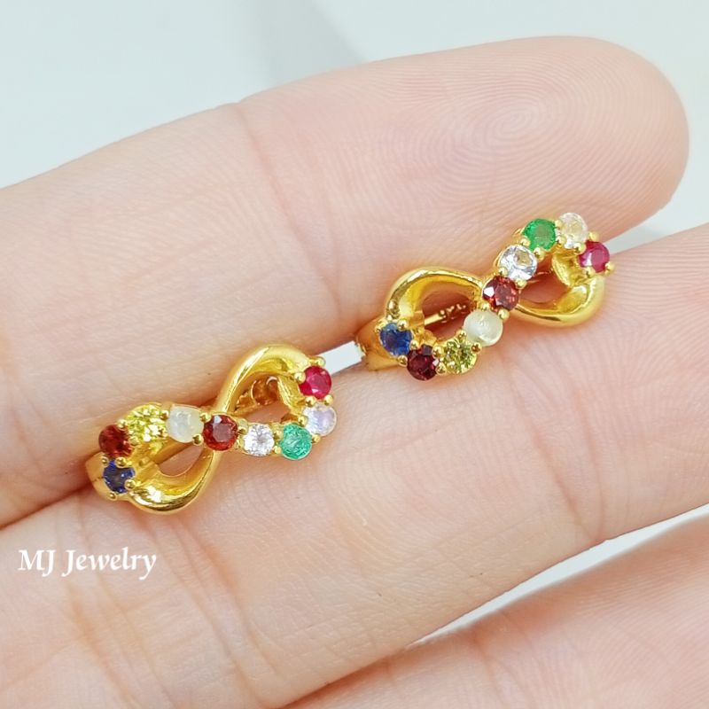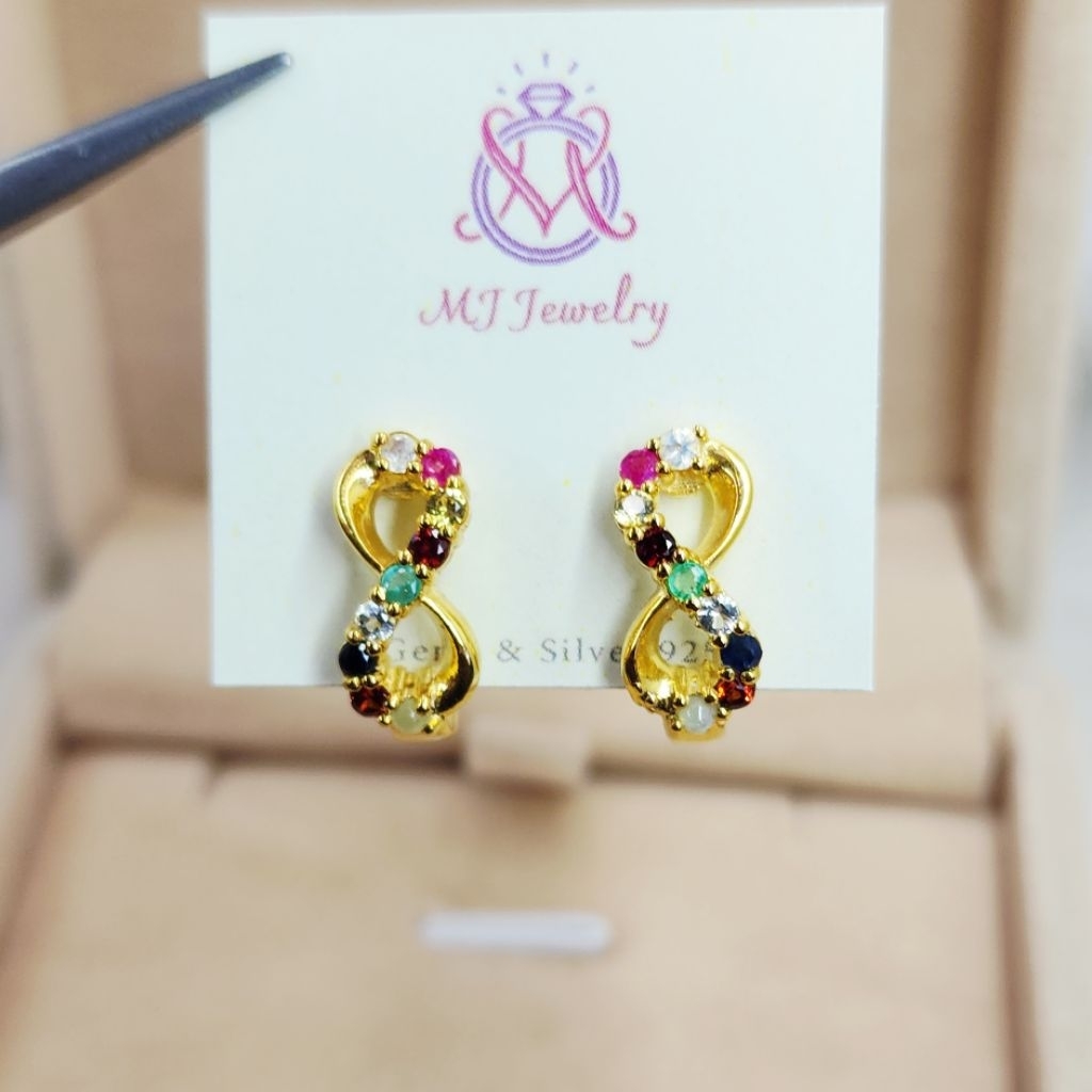 ต่างหูพลอยนพเก้า อินฟินิตี้ เสริมมงคล เสริมทรัพย์ เงินแท้ 92.5% พลอยแท้ทุกเม็ด