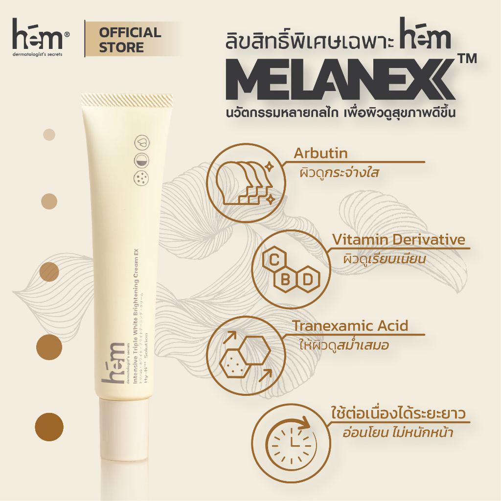 H.E.M INTENSIVE TRIPLE WHITE BRIGHTENING CREAM EX อินเท็นซีฟ ทริปเปิ้ล ไวท์ ไบร์ทเทนนิ่ง เอ็กซ์ 30g