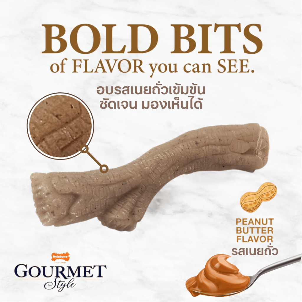 Nylabone Strong Chew Gourmet Style Stick Dog Chew Toy More Peanut Butter Flavor ของเล่นขัดฟันสุนัข