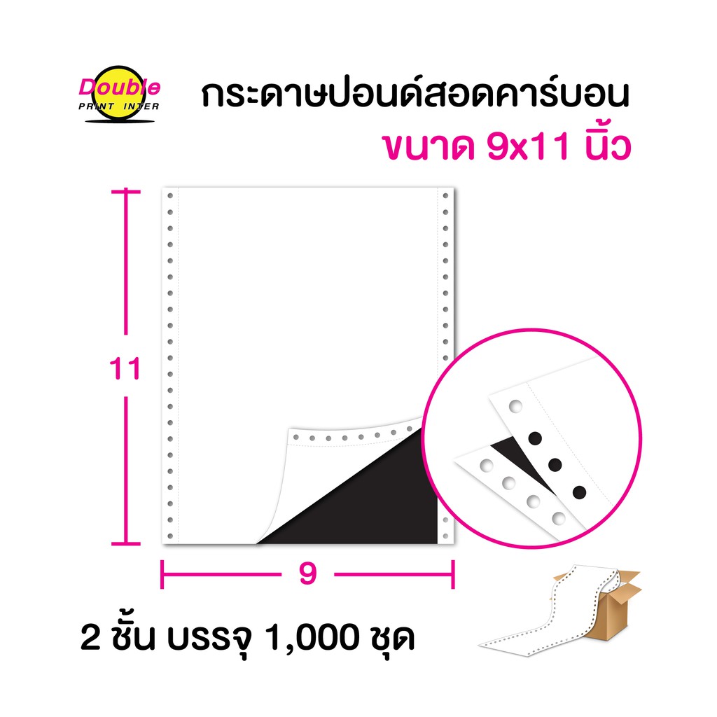 กระดาษปอนด์สอดคาร์บอน ขนาด 9x11 นิ้ว 2 ชั้น (บรรจุ 1,000 ชุด)