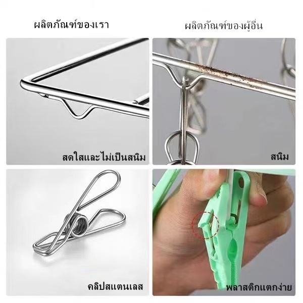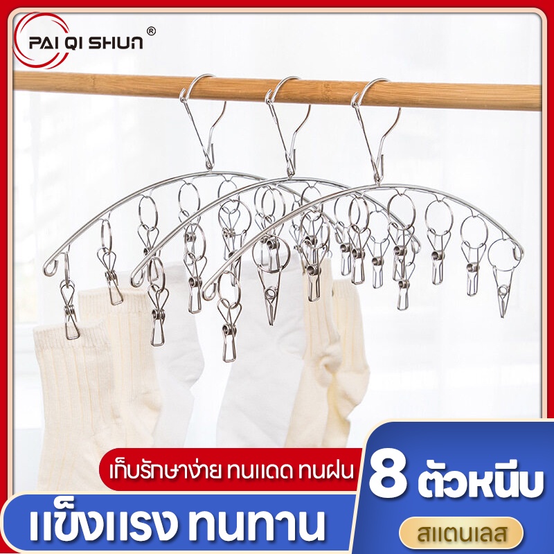 PQS ไม้หนีบ ที่หนีบผ้าสแตนเลส ไม้แขวนผ้าแบบหนีบ ไม้แขวนเสื้อ แบบเหลี่ยม แบบกลม แข็งแรงทนทาน