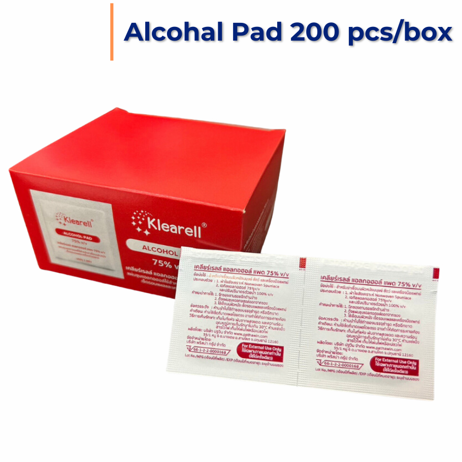 Klearell แผ่นชุบแอลกอฮอล์ ฆ่าเชื้อ Alcohol Pad 200 แผ่น แอดลาย @ausplusmed