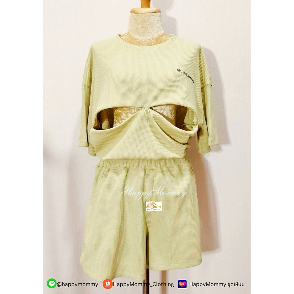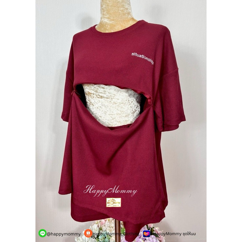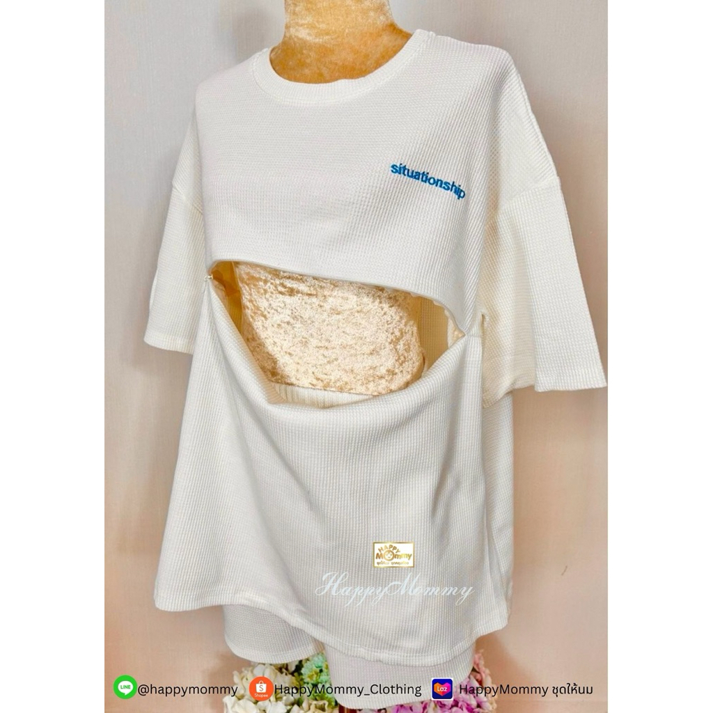 HappyMommy ชุดให้นมสุดแสนจะใส่สบาย ผ้าไม่ต้องรีด Honey Waffle