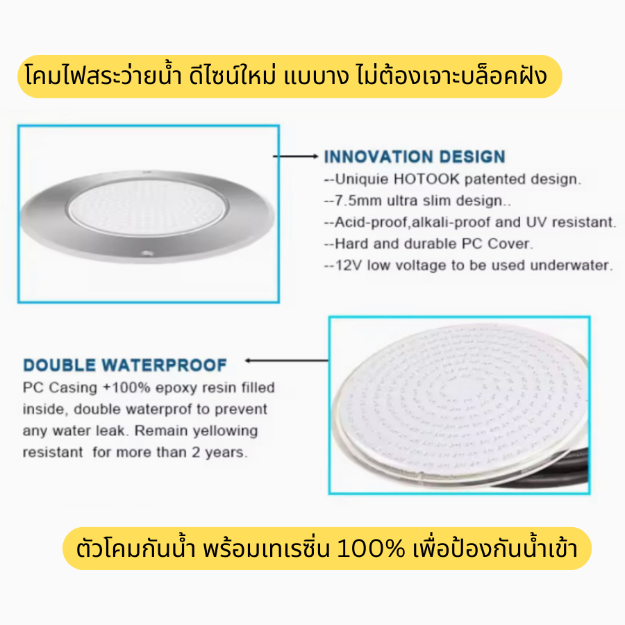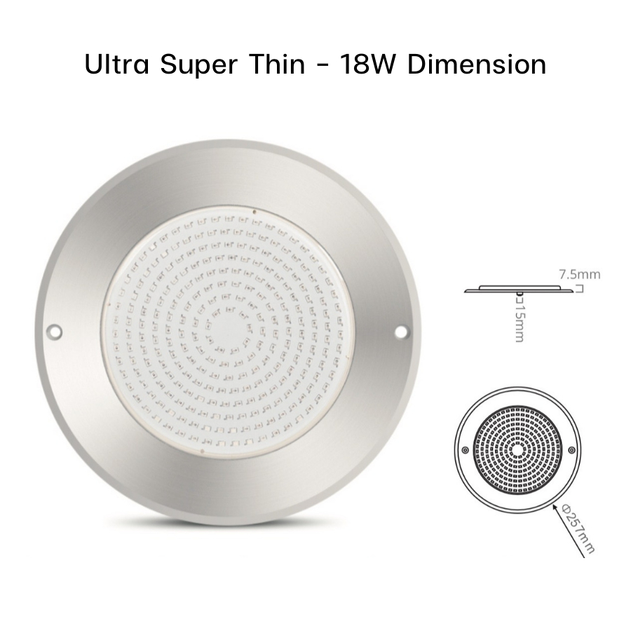 ไฟสระว่ายน้ำ สระน้ำเกลือ แสตนเลส316 LED Swimming Pool Light Underwater Light 12W/18W DC12V แสงวอร์มไวท์ 3000K/RGB