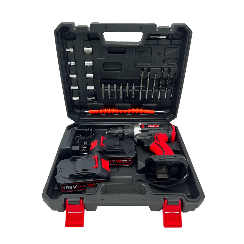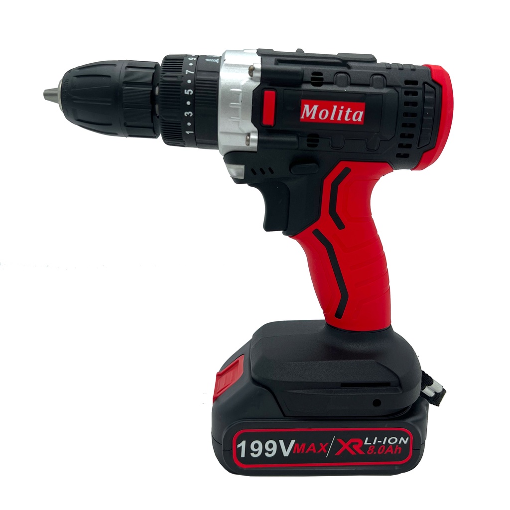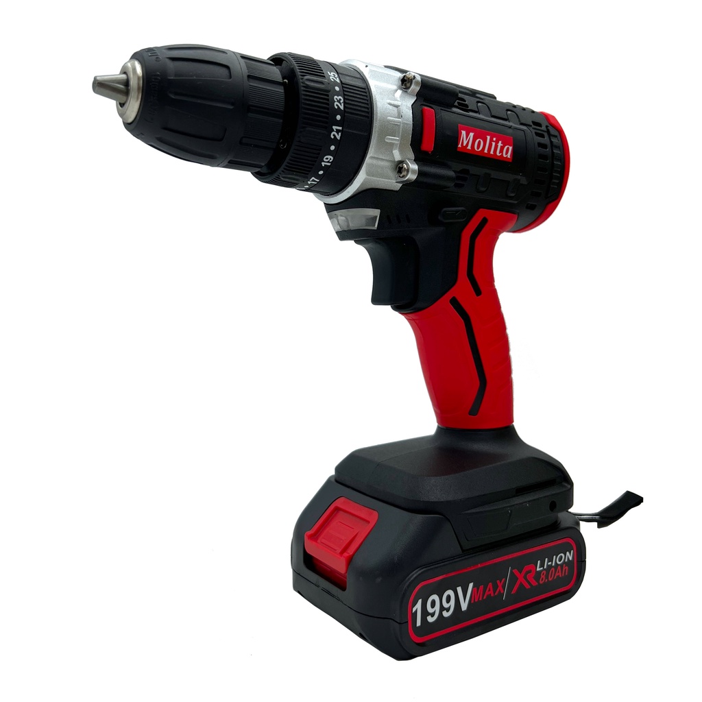 MOLITA สว่านไร้สาย สว่าน 199V 3 ระบบ มีระบบกระแทก แบตเตอรี่อย่างดี 1ก้อน หรือ 2ก้อน พร้อม ดอกสว่าน และ อุปกรณ์ เครื่องมื