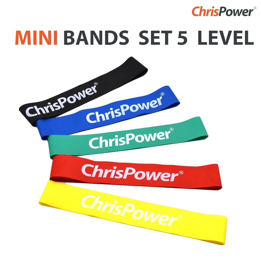 ChrisPower ยางยืดบริหารร่างกาย MiniBands 5Pcs/Set Y-G-R-BL-BK (1 กล่อง บรรจุ 5 ชิ้น) (625)