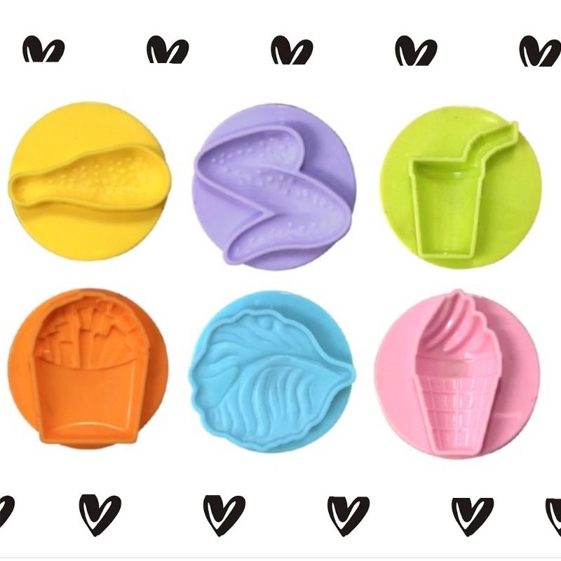 แม่พิมพ์แป้งโดว์ แบบปั๊ม แม่พิมพ์ฟาสฟู้ด / แม่พิมพ์ผลไม้ 6+1 Molds Play Dough