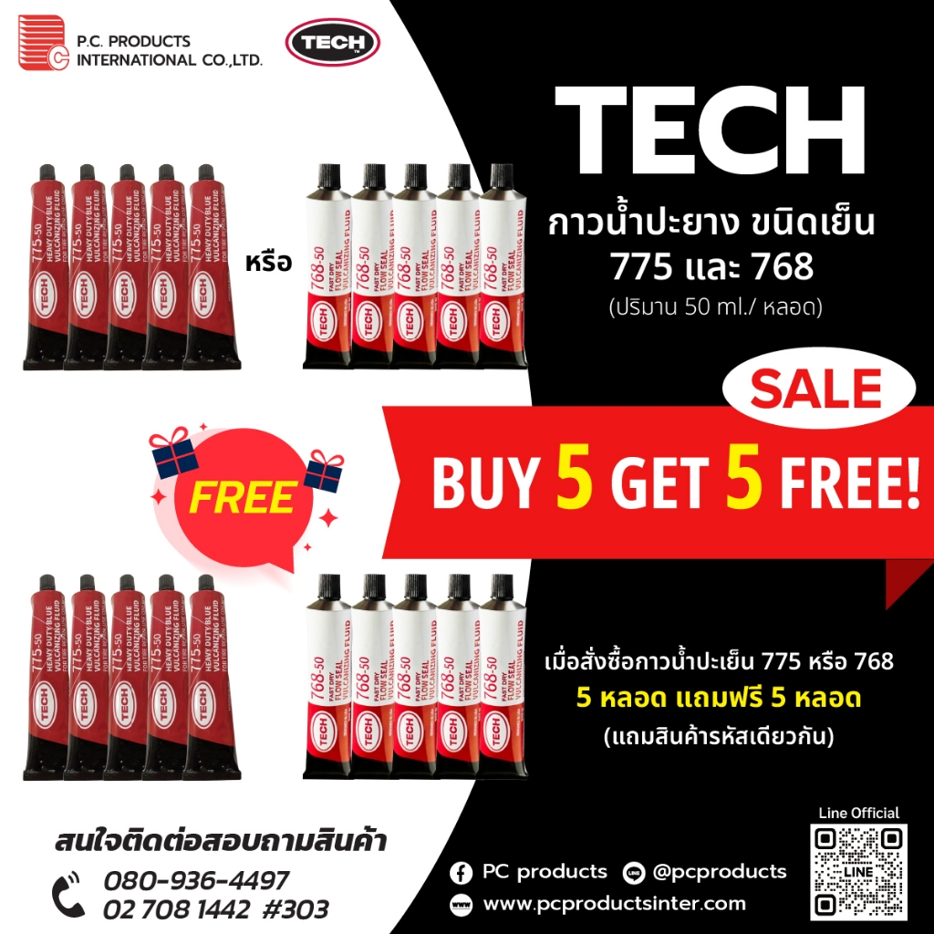 TECH กาวน้ำปะเย็น NO.768 แบบหลอด 5 หลอด เท่ากับ 1 กระปุก ขนาดบรรจุ 50 ml.