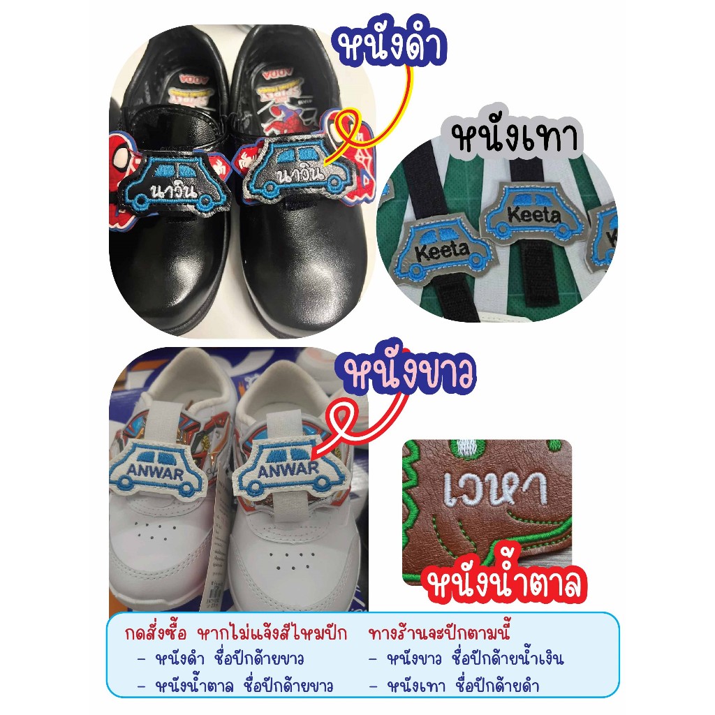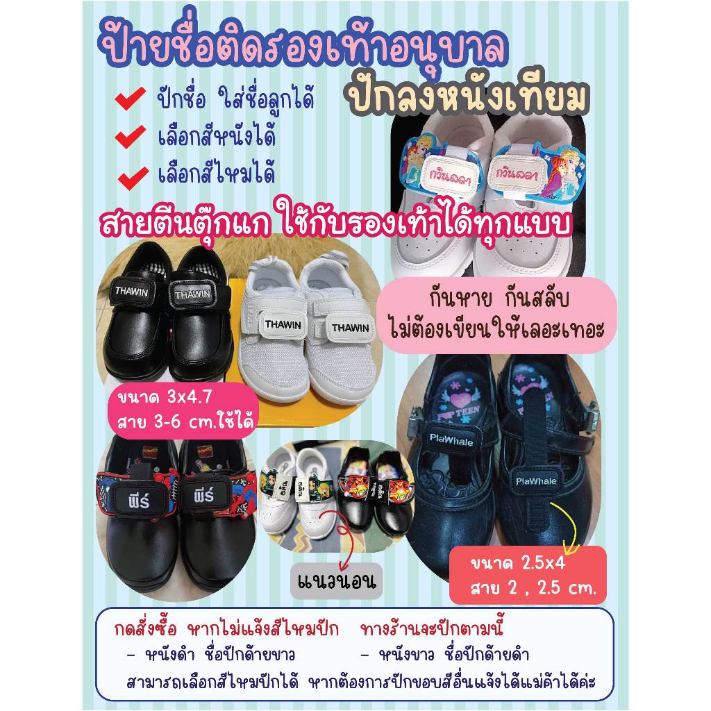 ป้ายชื่อติดรองเท้าสำหรับเด็กๆ กันรองเท้าสลับกับเพื่อนๆ หนังPU ตีนตุ๊กแก(1คู่=2ชิ้น)❌ไม่รับเก็บเงินปลายทาง❌