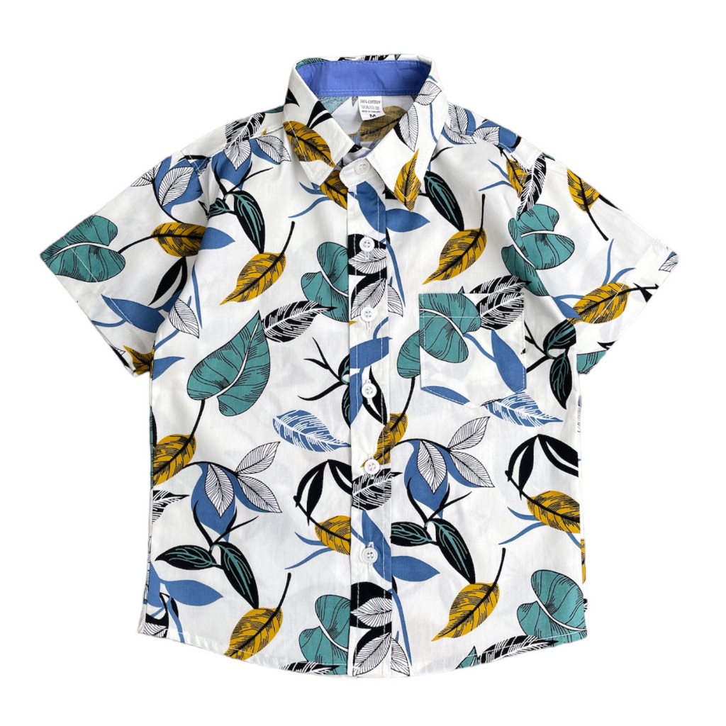 เสื้อเชิ้ตเด็กแขนสั้น-ลายใบบอน