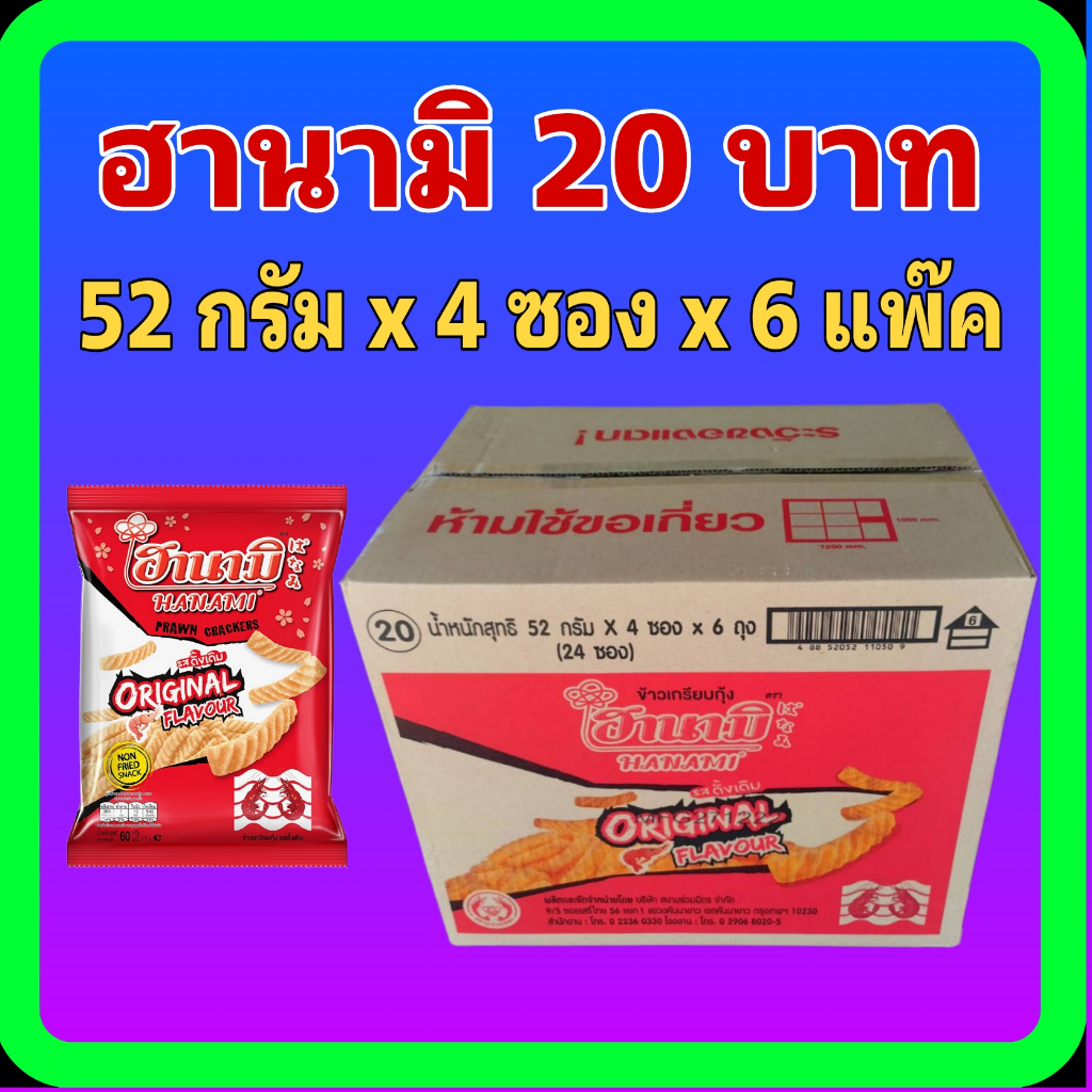 (ขายยกลัง) ฮานามิ ข้าวเกรียบกุ้ง รสดั้งเดิม/ สแน็คแจ๊ค ขนมถั่วลันเตาอบกรอบ ขนาด 20 บาท 1 ลัง บรรจุ 4 ซอง x 6 แพ๊ค