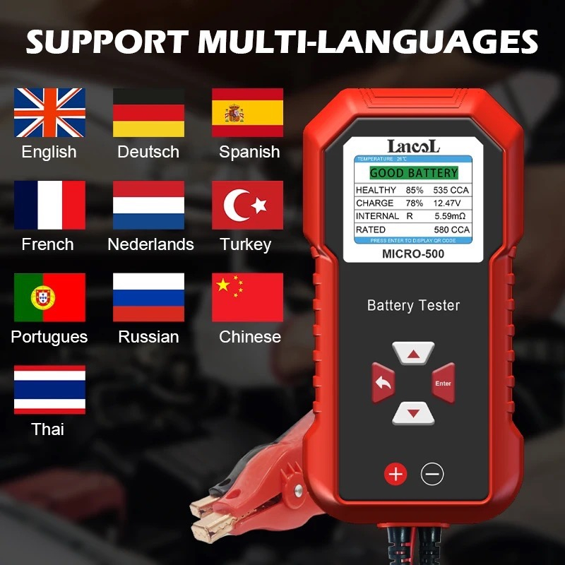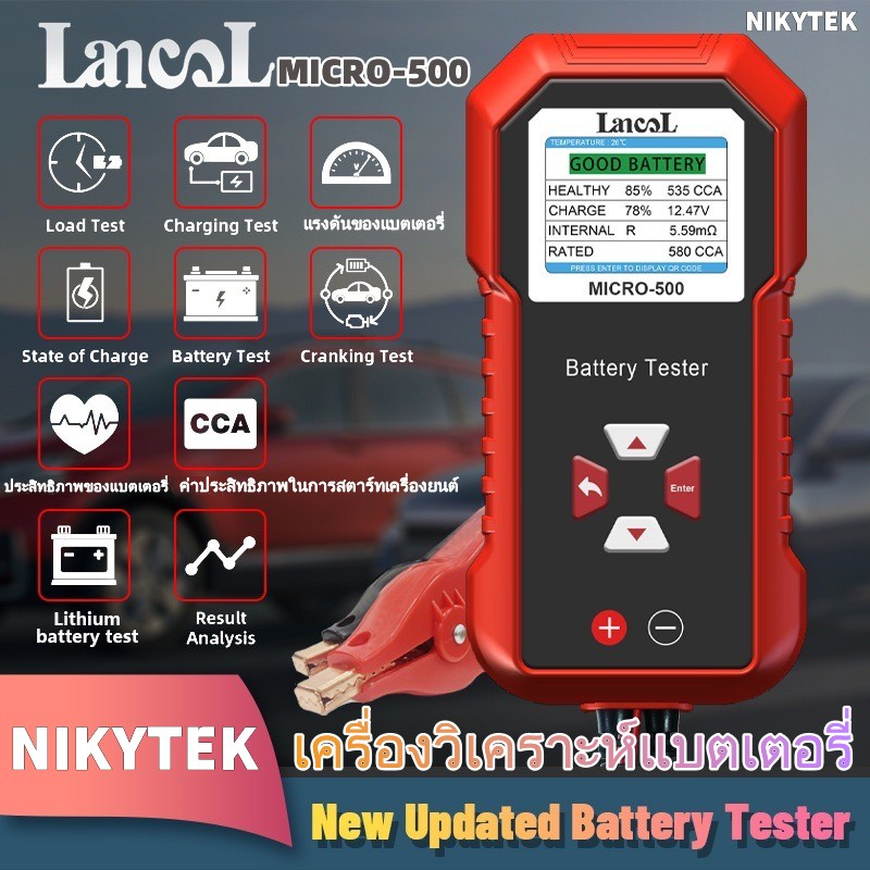 Lancol Micro 500 เครื่องทดสอบแบตเตอรี่ลิเธียม 12V 40-3000 CCA หน้าจอ LED สําหรับรถยนต์