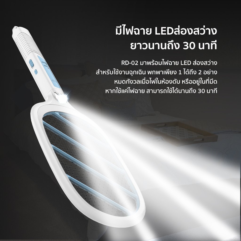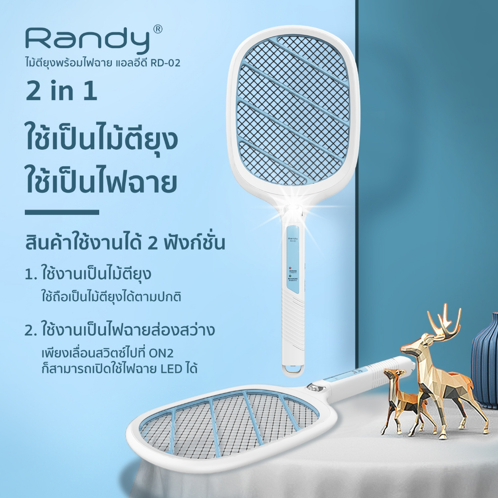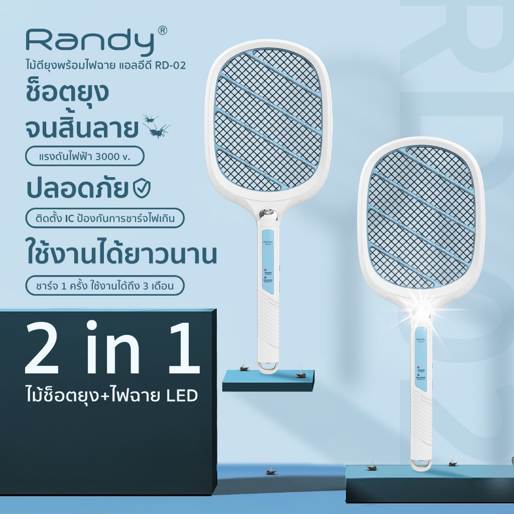 RANDY RD-02ไม้ช็อตยุงไฟฟ้า 2in1 ไม้ตียุงไฟฟ้า แบตเตอรี่1800mahไม้ช็อตยุงชาร์จทีเดียวใช้4เดือนพลังสูง