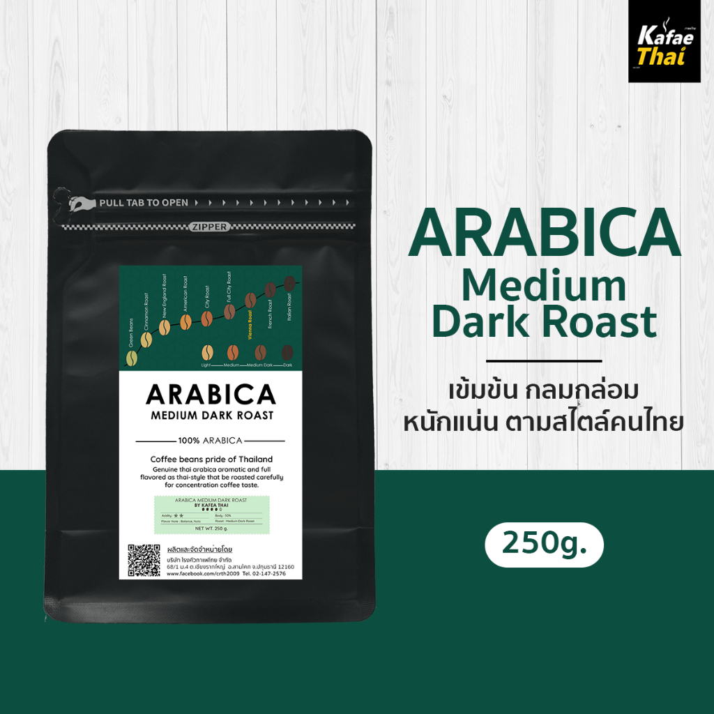 [ส่งฟรี] เมล็ดกาเเฟคั่ว Arabica Medium Dark Roast อาราบิก้า 100% คั่วกลางเข้ม ขนาด 250 กรัม