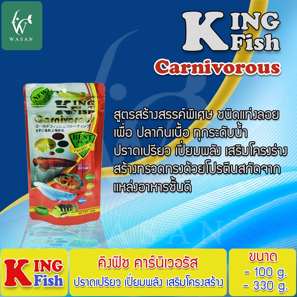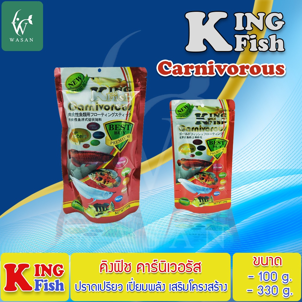อาหารปลา คิงฟิช king fish Carnivorous 330g.อาหารปลามังกร ปลากินเนื้อ เร่งโต โปรตีนสูง ชนิดแท่งลอย