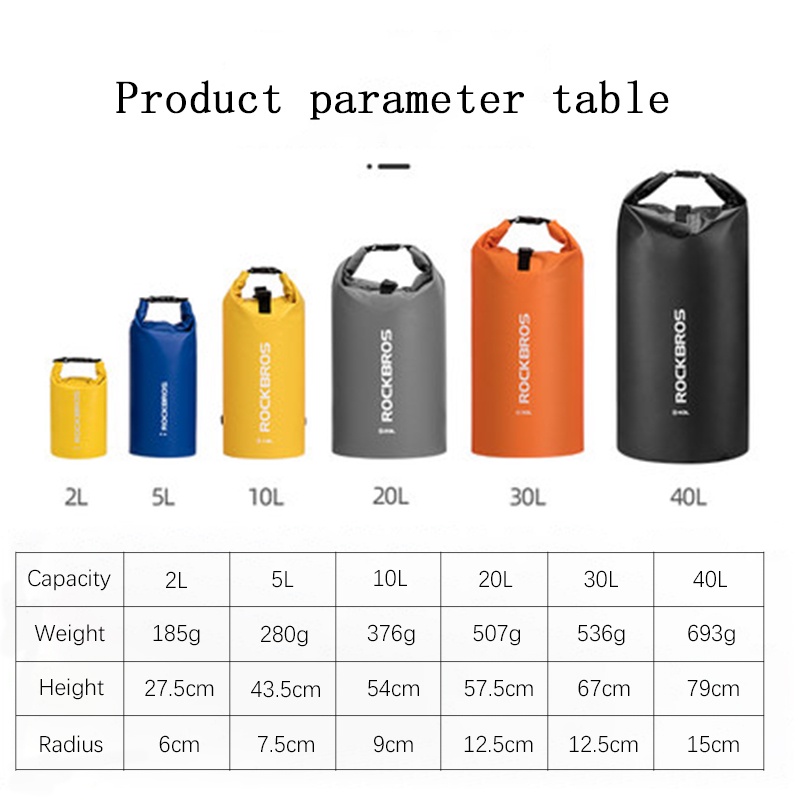 【TH Delivery】【TH Delivery】ROCKBROS กระเป๋ากันน้ำ PVC หลายขนาดี 2L/5L/10L/20L/30L/40L น้ำหนักเบา กันน้ำ 100% แบบสะพายหลัง เหมาะสำหรับว่ายน้ำ วิ่ง และแคมป์ปิ้ง