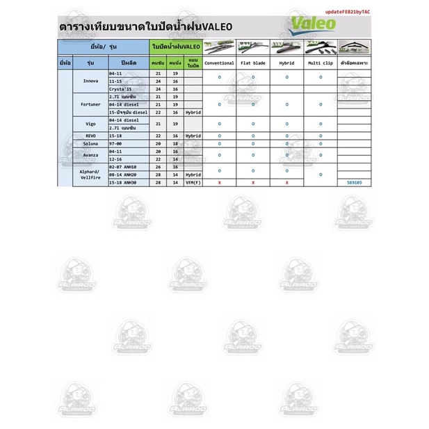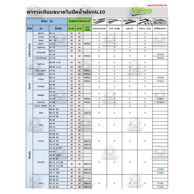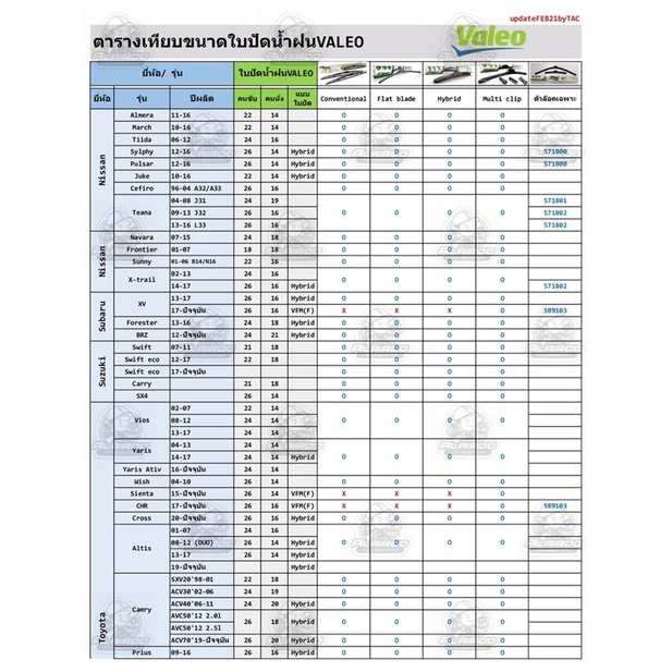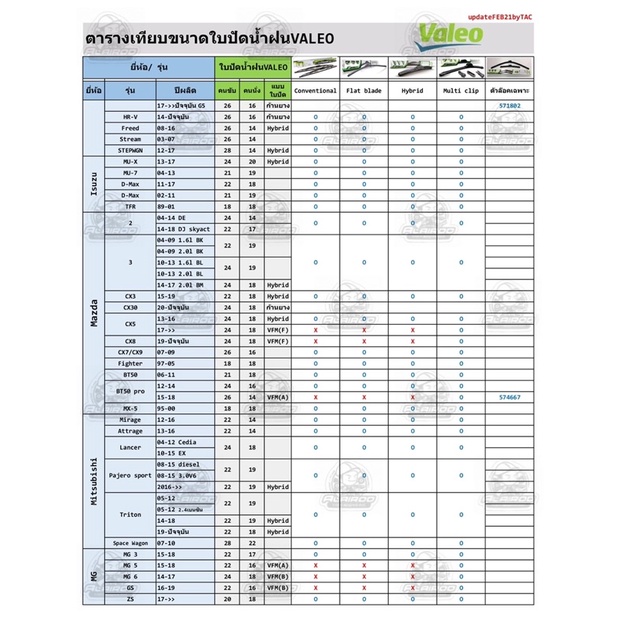 ใบปัดน้ำฝน VALEO FLAT BLADE 14นิ้ว,16นิ้ว,17นิ้ว,18นิ้ว,19นิ้ว,20นิ้ว,21นิ้ว,22นิ้ว,24นิ้ว,26นิ้ว ขายเป็นอัน