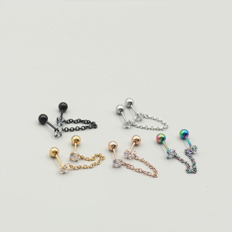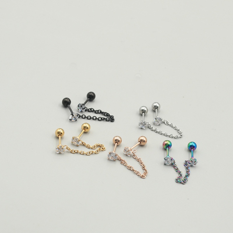 [YY] ต่างหูโซ่เหล็กไทเทเนียม จี้รูปดาวห้าแฉก ประดับเพทาย ขนาดเล็ก