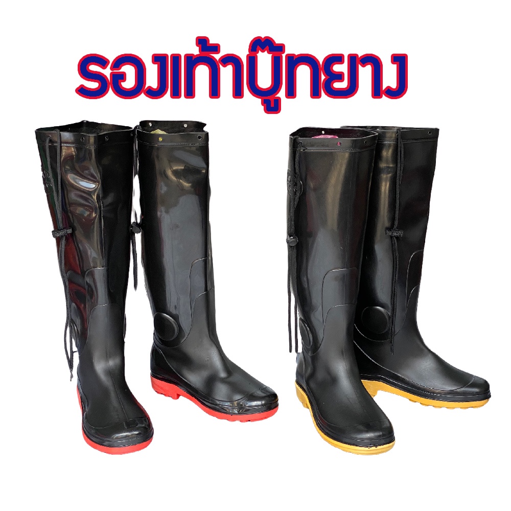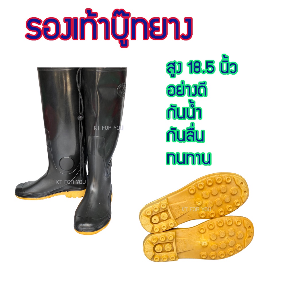 พร้อมส่ง 📌รองเท้าบูท รองเท้าบูทกันน้ำ สูง18.5 นิ้ว สีดำพื้นปุ่มเหลือง กันน้ำ กันลื่น รองเท้าบูทสูง
