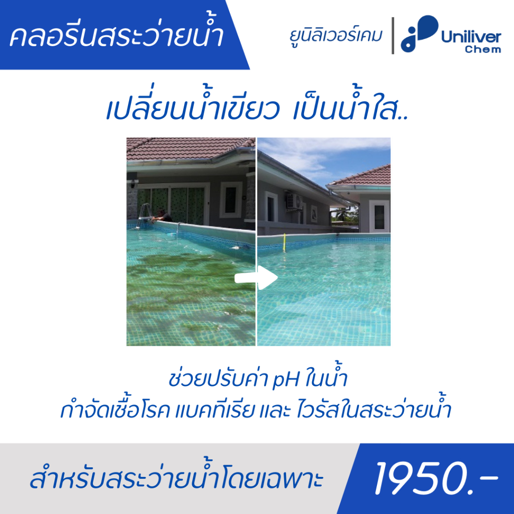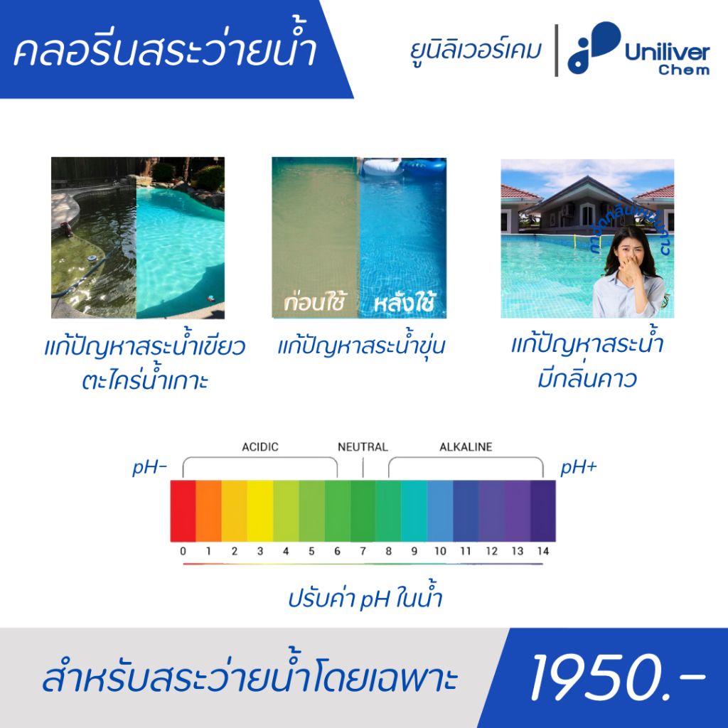 คลอรีนสระว่ายน้ำ คลอรีน 90% แก้น้ำขุ่น ปรับใส ฆ่าเชื้อโรค แก้น้ำเขียว ตะไคร่น้ำ ไฮโดรไลซ์ ถัง 20kg