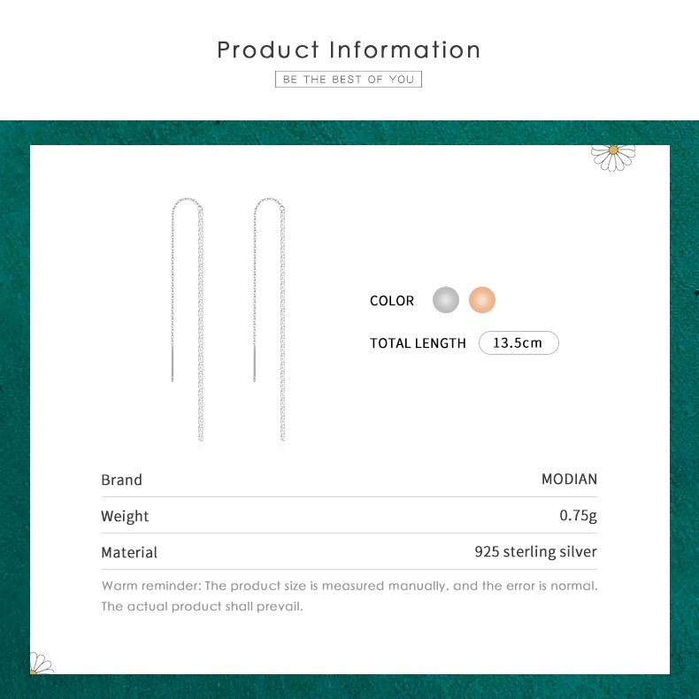 Modian ต่างหูโซ่ยาว เงินแท้ 925 ห้อยพู่ยาว สไตล์คลาสสิก เรียบง่าย เครื่องประดับ สําหรับผู้หญิง งานแต่งงาน