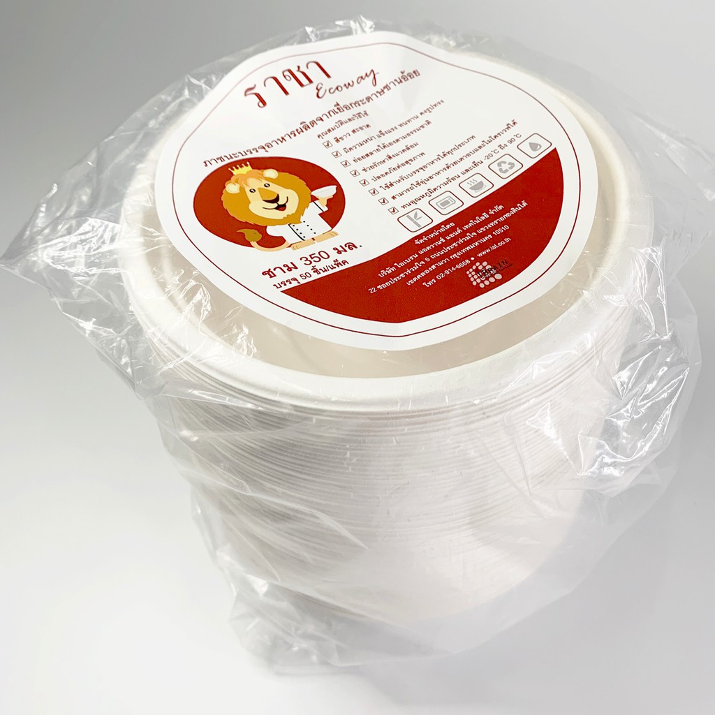 ชามชานอ้อย 5 นิ้ว 350 มล. สีขาว [ BL350 ] แบรนด์ ราชา Ecoway (50 ชิ้นต่อแพ็ค)