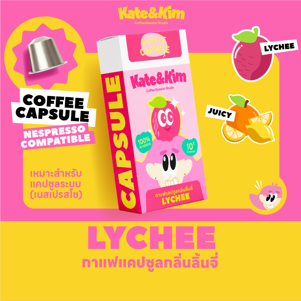 กาแฟแคปซูล " แต่งกลิ่น " ลิ้นจี่ (( Kate & Kim )) Lychee Coffee Capsules ระบบ Nespresso