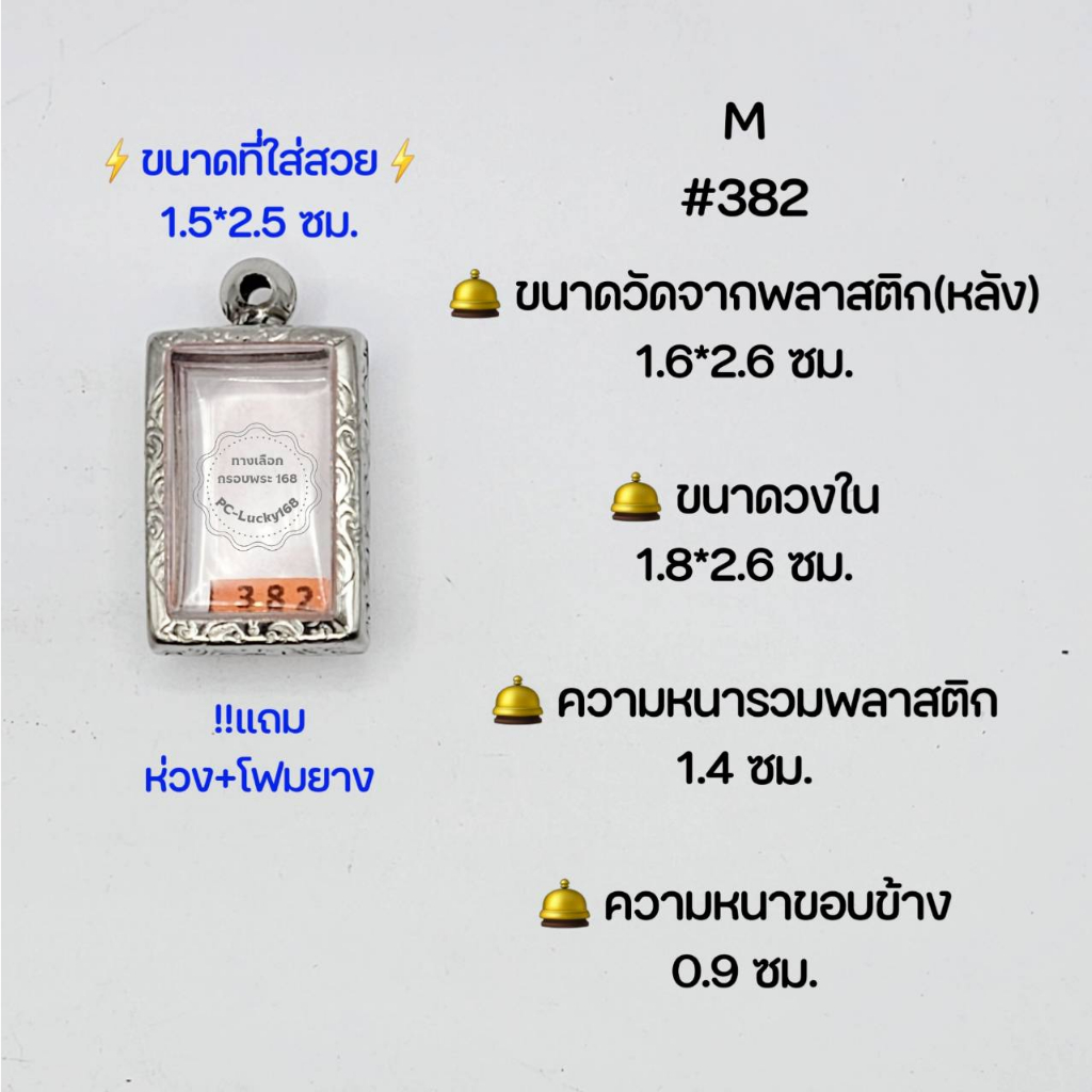 M#382 ตลับพระ/กรอบพระสเตนเลสลายไทยวงใน1.8*2.6 ซม. พิมพ์สี่เหลี่ยมสมเด็จเล็ก ขนาดใส่สวย1.5*2.5ซม