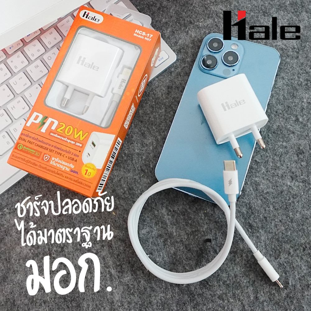 [มี มอก.] Hale ปลั๊กชาร์จเร็ว 20W ช่องชาร์จเร็วแบบคู่ 2 USB (PD + USB QC3.0) Adapter Quick Charge HCS-17 HA-16