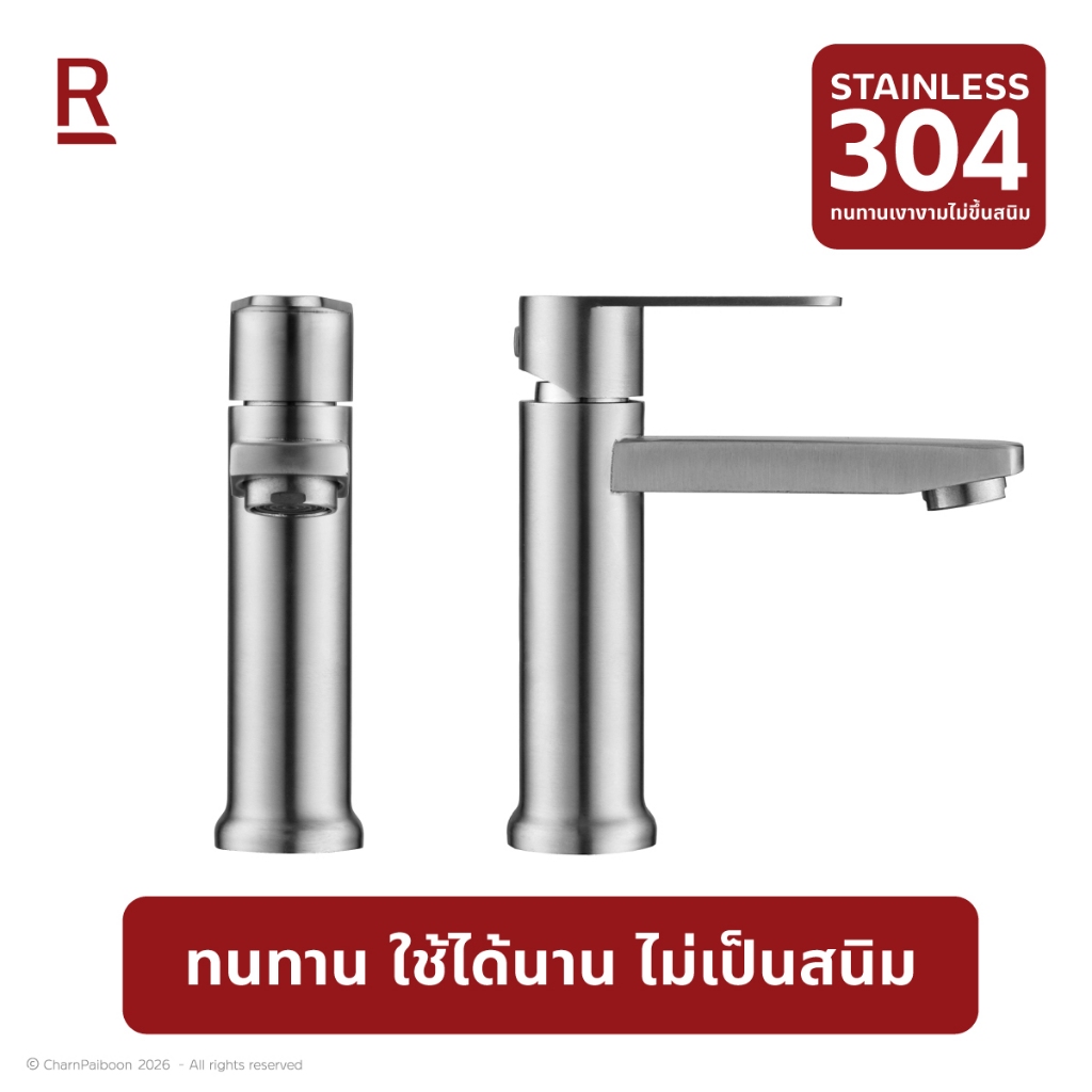 RASLAND 304-22339 ก๊อกน้ำเย็นเดี่ยว ปากก๊อกยาว 12 ซม. ตัวก๊อกมีขนาดความสูง 15 ซม. สแตนเลส สแตนเลสด้าน