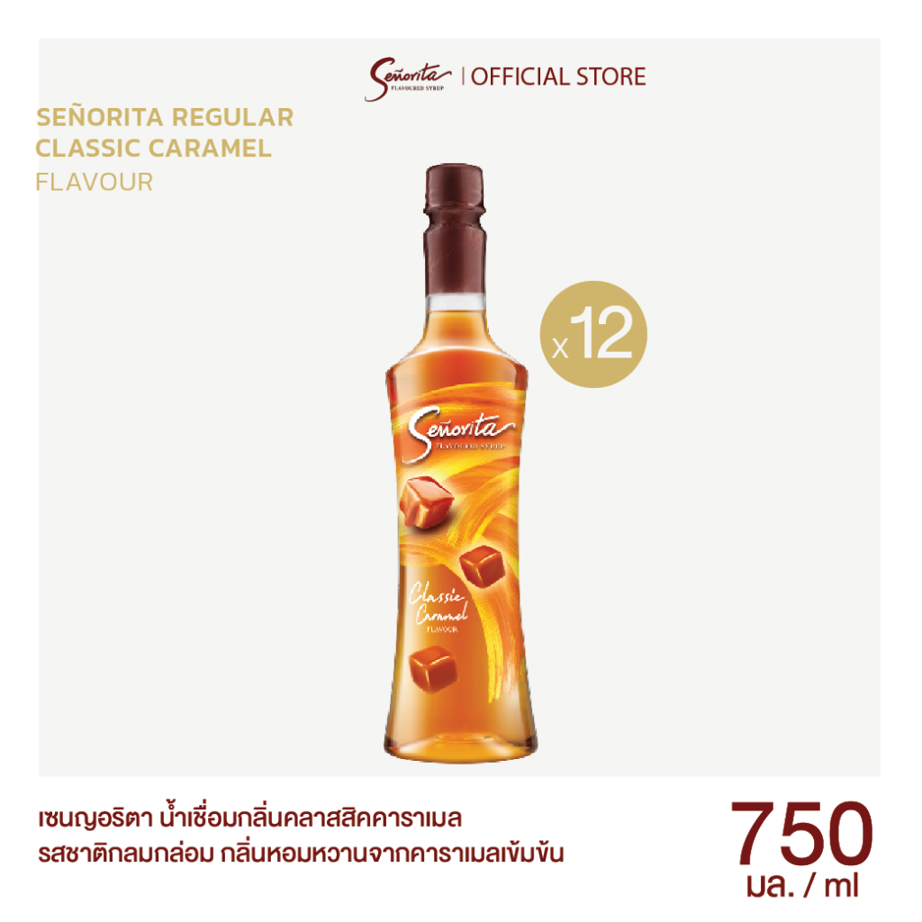 Senorita - Classic Caramel Syrup เซนญอริตา น้ำเชื่อมแต่งกลิ่นคลาสสิค คาราเมล 750ml. (12 ขวด)