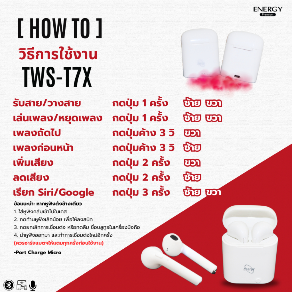 หูฟังบลูทูธปุ่มกด Truewireless TWS T7X