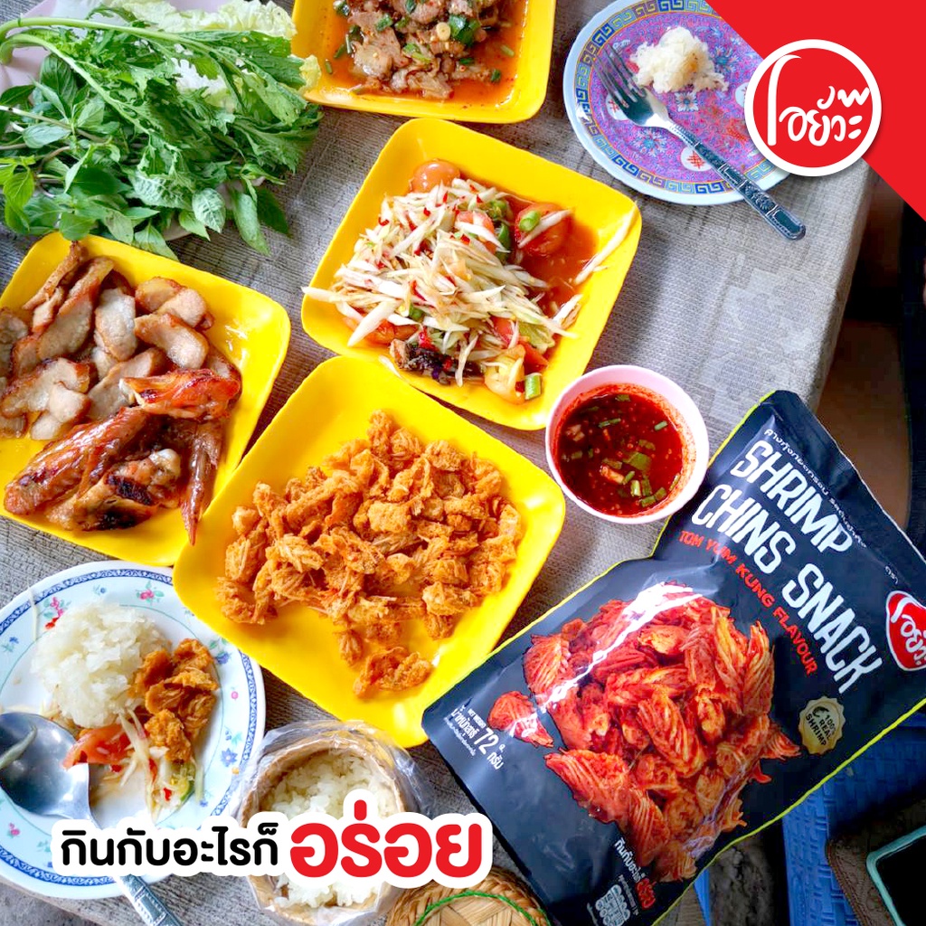 คางกุ้ง ทอดกรอบ รสต้มยำกุ้ง ขนาด 72 กรัม ตราโอยั๊วะ Shrimp Chins Snack Tom Yum Flavour. 72g.