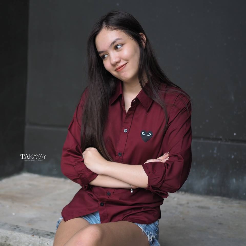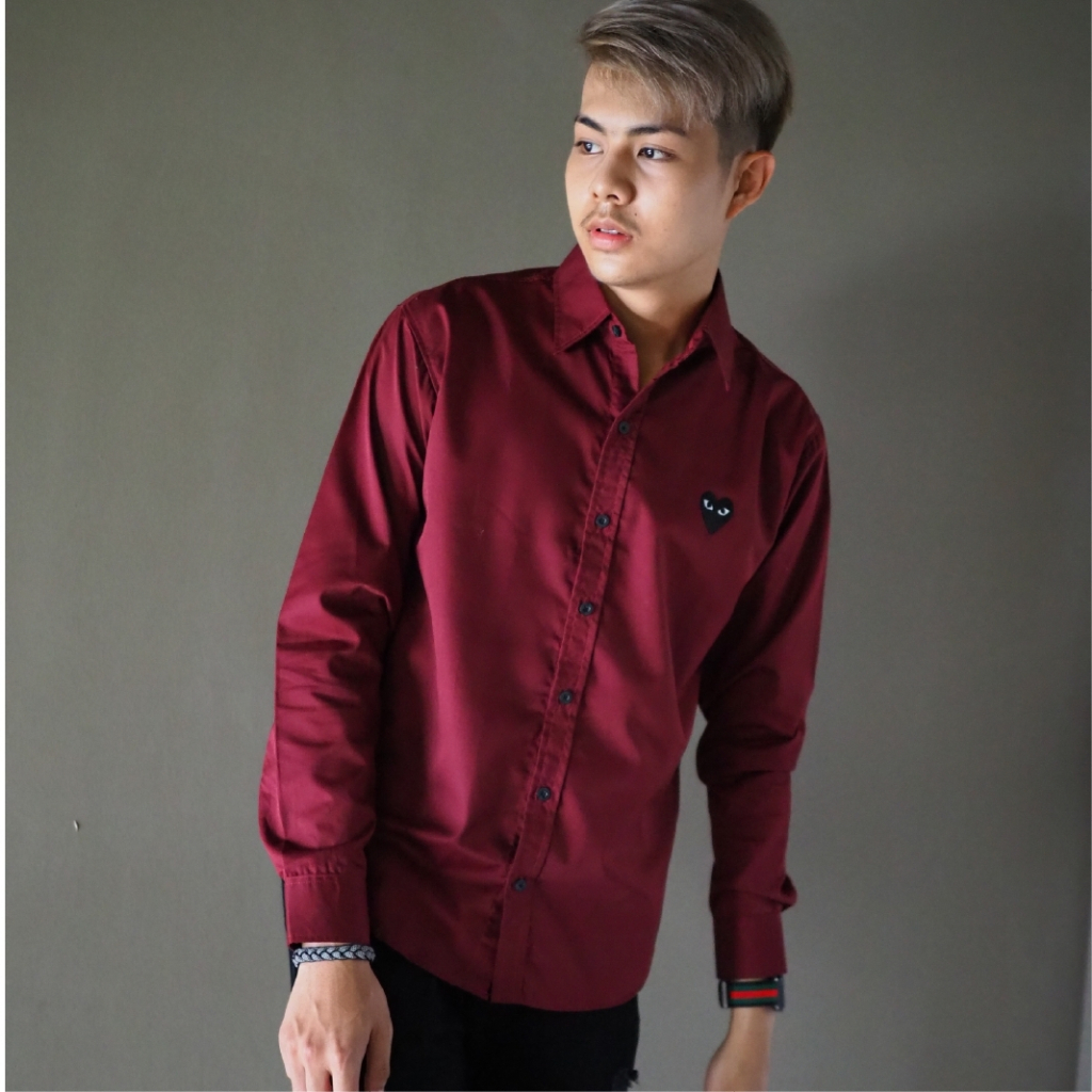 takayay brand เสื้อเชิ้ต สีแดงเบอกันดี้พื้นใจดำ 36-54 นิ้ว เสื้อเชิ้ตสีแดง ผ้าคอตตอนทวิล