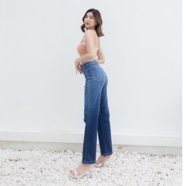 Gondeng Andaman Jeans กางเกงยีนส์ก้นเด้ง ขากระบอกเล็ก สีอันดามัน (ผ้ายืด-เอวสูง)