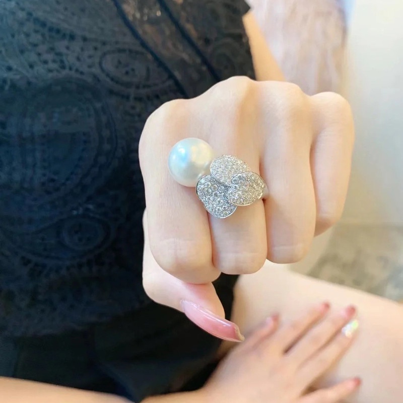แหวน ประดับไข่มุก พลอยเทียม ขนาดใหญ่ หรูหรา แวววาว สําหรับผู้หญิง 2022