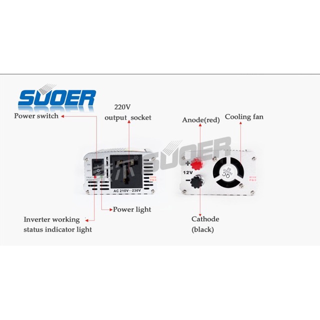Suoer (NIKYTEK)solar power inverter 1000VA/1200W 12V 220V Inverter(SUA-1000A)