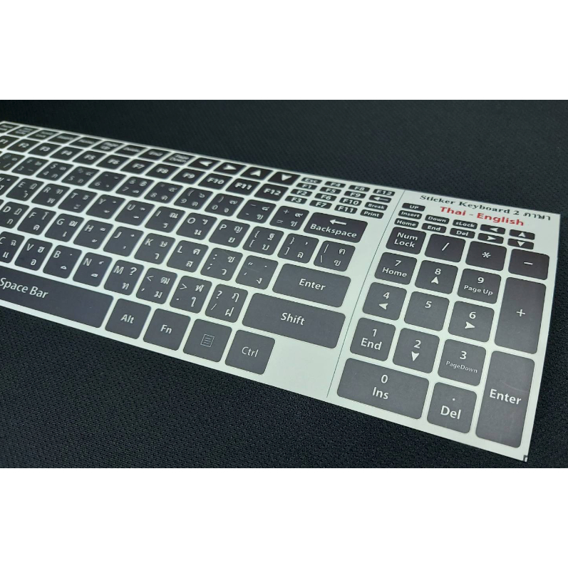 สติ๊กเกอร์แปะคีย์บอร์ด สี่เหลี่ยม สีดำล้วน มีขอบขาวนิดหน่อย (keyboard Square Black) ภาษา อังกฤษ, ไทย