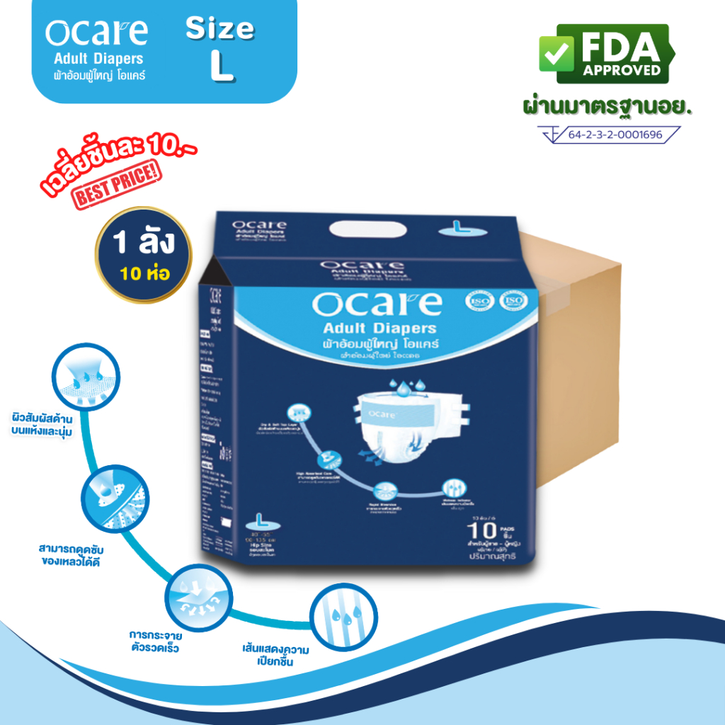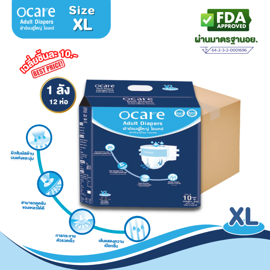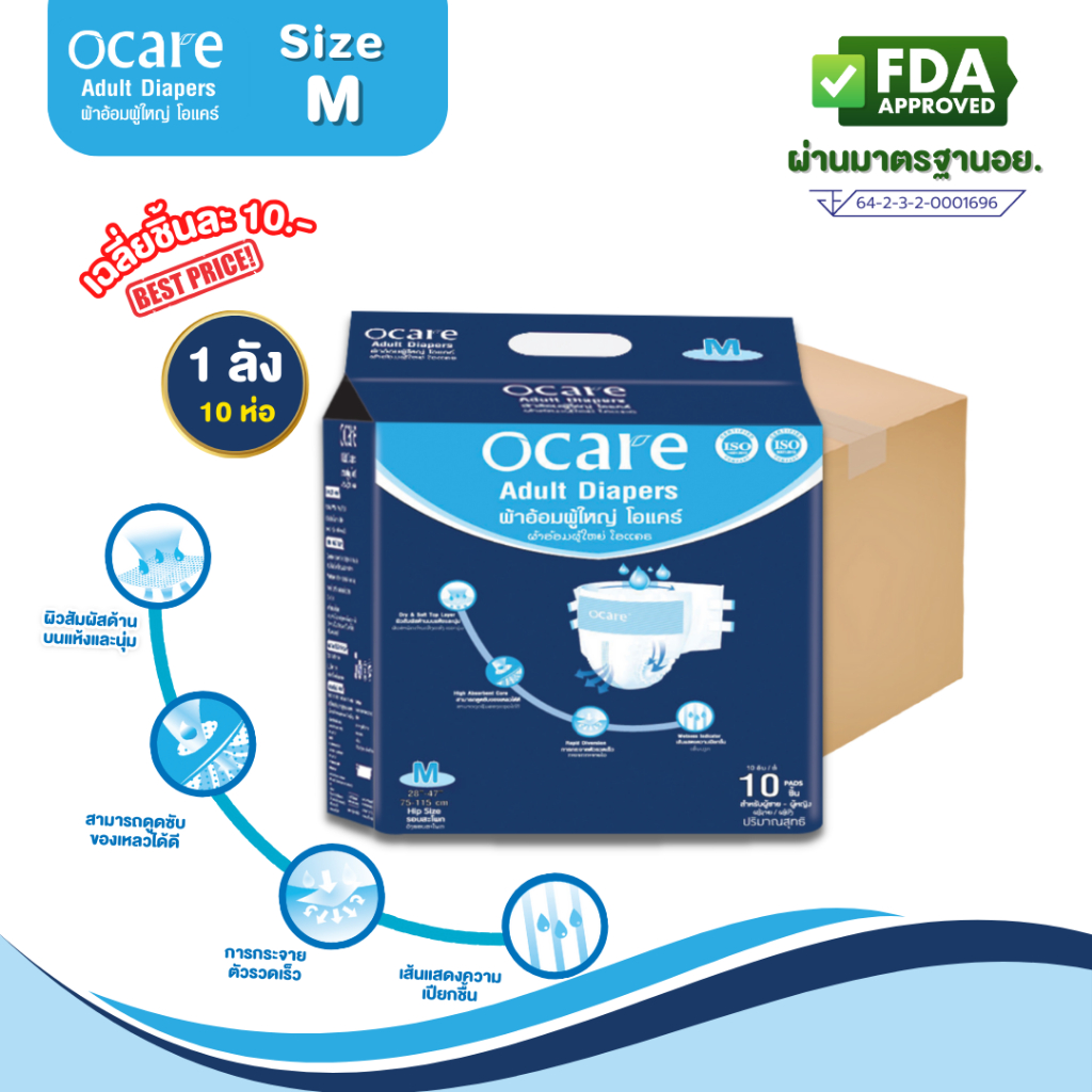 [สั่ง1ลัง/1บิล] ocare ผ้าอ้อมผู้ใหญ่ ผ้าอ้อมผู้ใหญ่แบบเทป โอแคร์ Size M, L และ XL (จำนวน 1 ลัง )