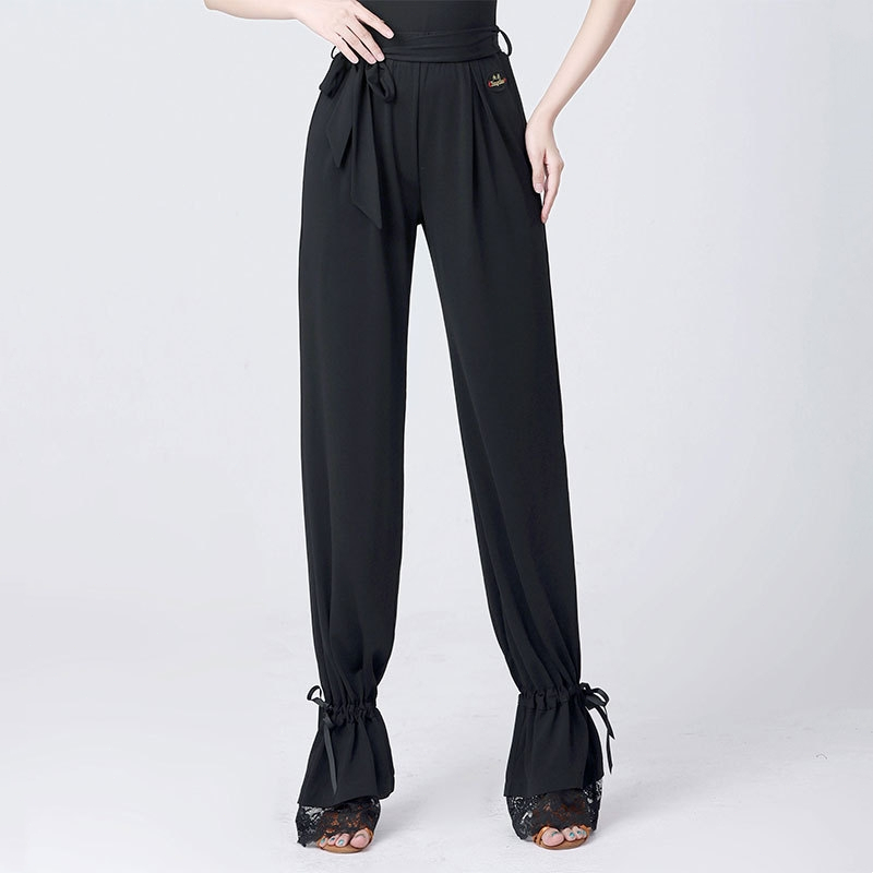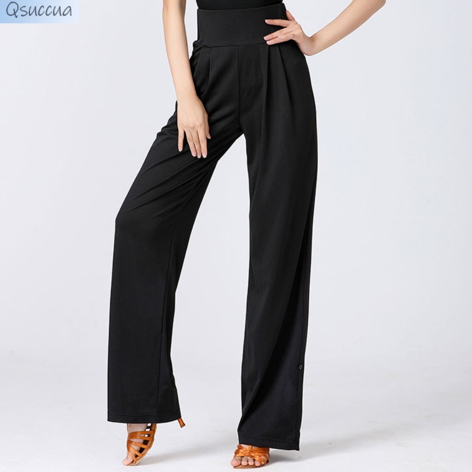 Qsuccua ผู้ใหญ่สุภาพสตรี Latin Ballroom Dance ยืดขาผูกกางเกงหลวมปฏิบัติประสิทธิภาพ