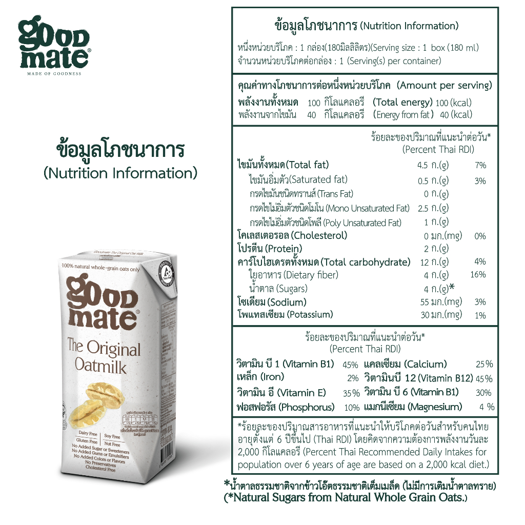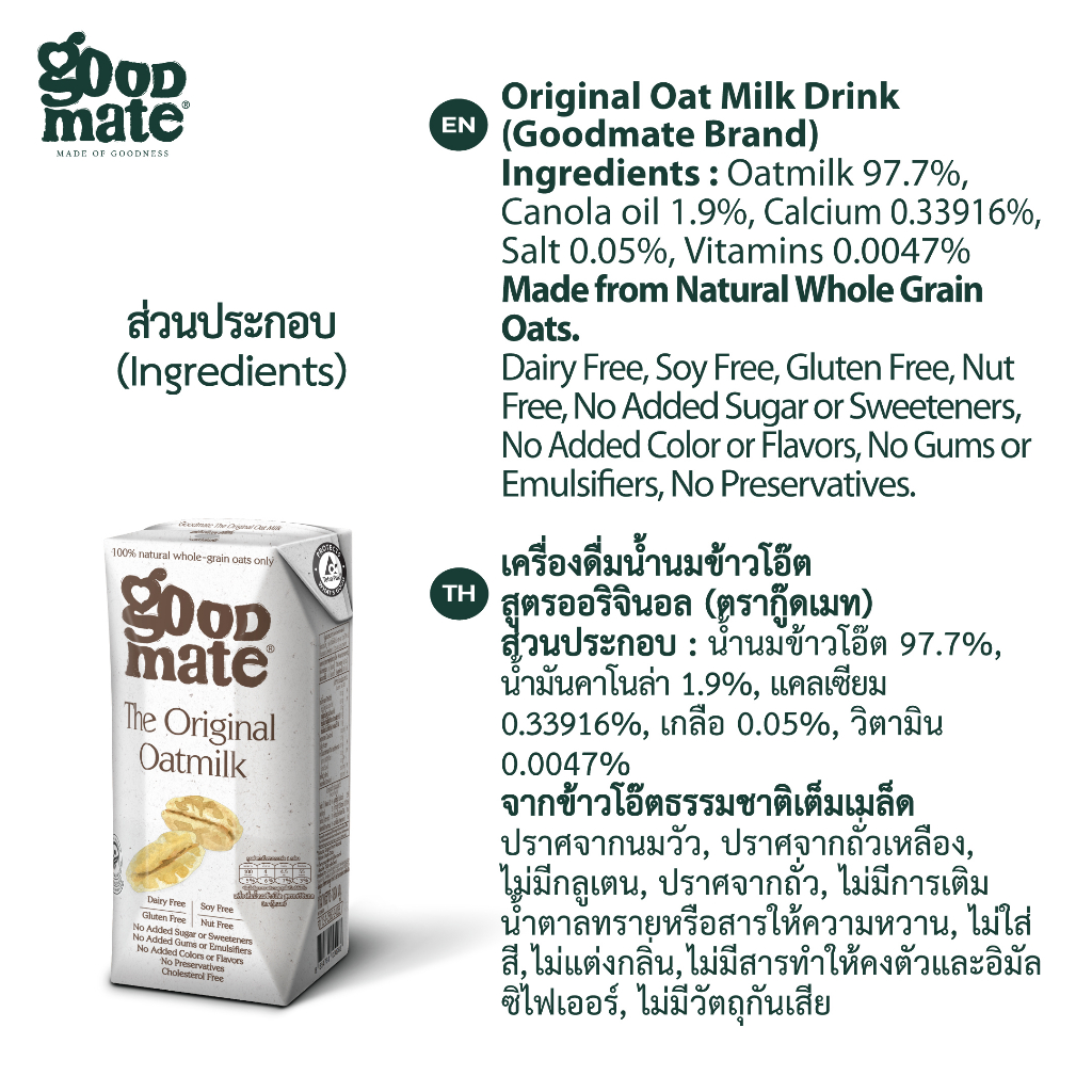Goodmate นมโอ๊ต ขนาด 180 มล. (2 ลัง : 72 กล่อง) (เลือกรสชาติได้)