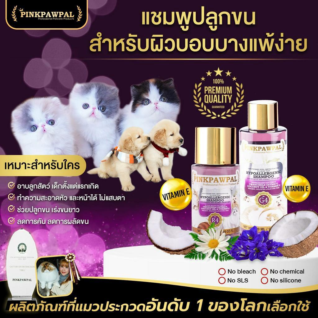 Pinkpawpal แชมพูสูตรอ่อนโยน แก้แพ้ เร่งขนยาว( Facial and kitten Shampoo )